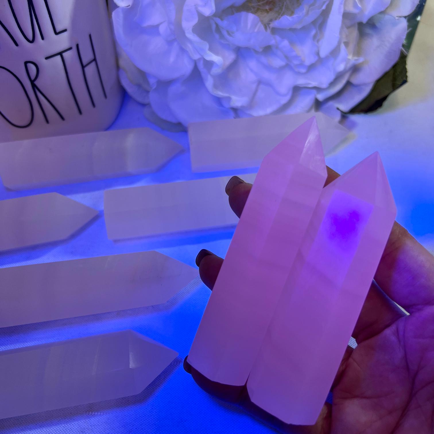 Each Mangano Calcite tower is uniquely formed, with soft pink tones and delicate variations—radiating gentle strength and beauty in its own way, just like you do.